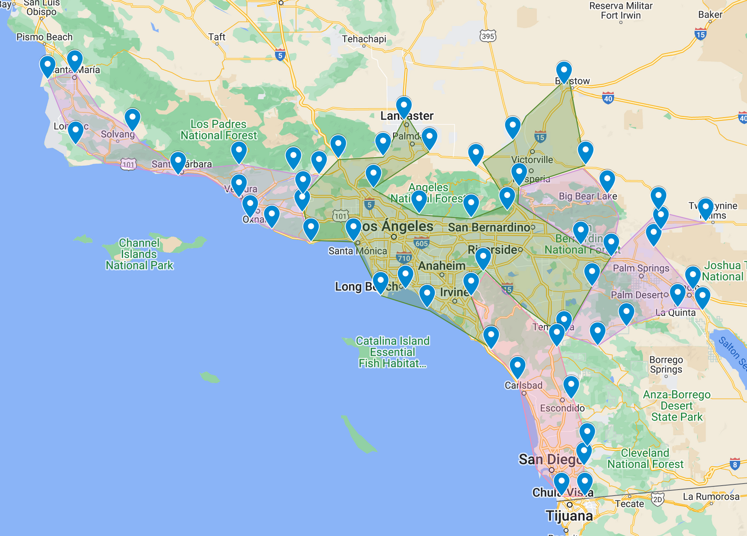Entregas en el SUR DE CALIFORNIA